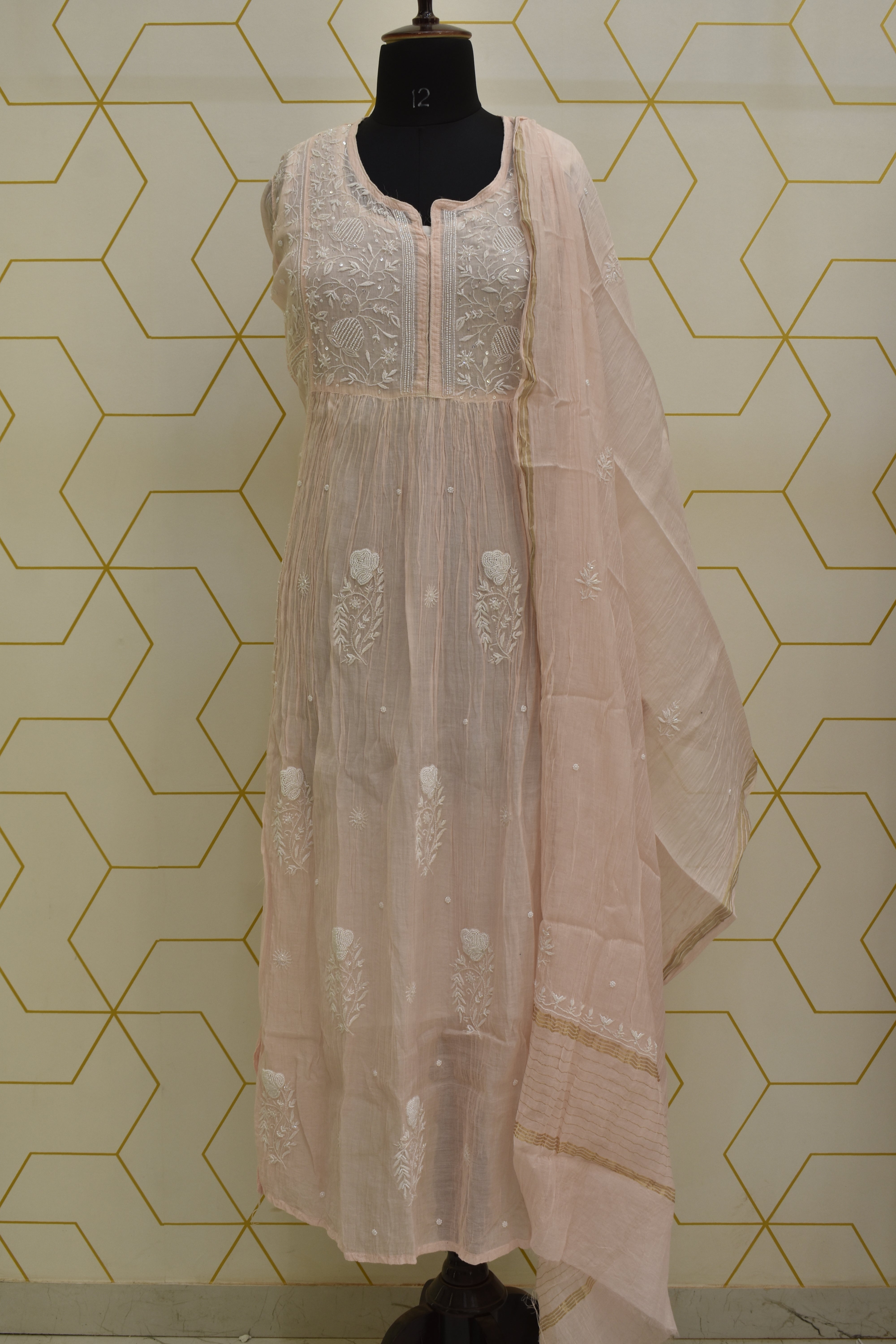Please note that due to the handmade nature of our products, there might be slight variations in the crafting and embroidery compared to the showcased images. The visibility of threads on the back of the materials is a symbol of authentic handmade chikankari.