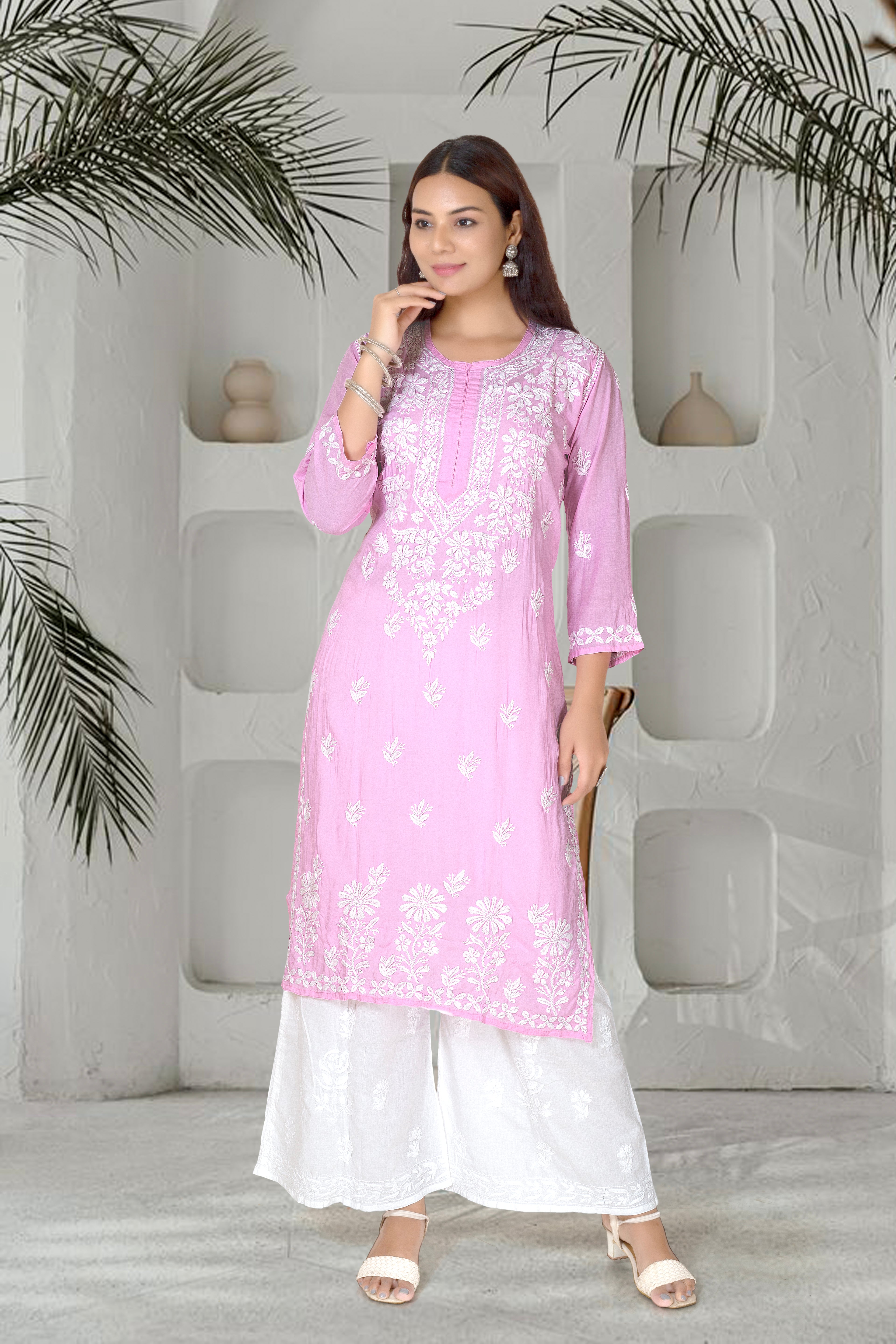 Experience the richness of Lucknowi heritage with this stunning modal Chikankari long straight kurti epitomizes the elegance.